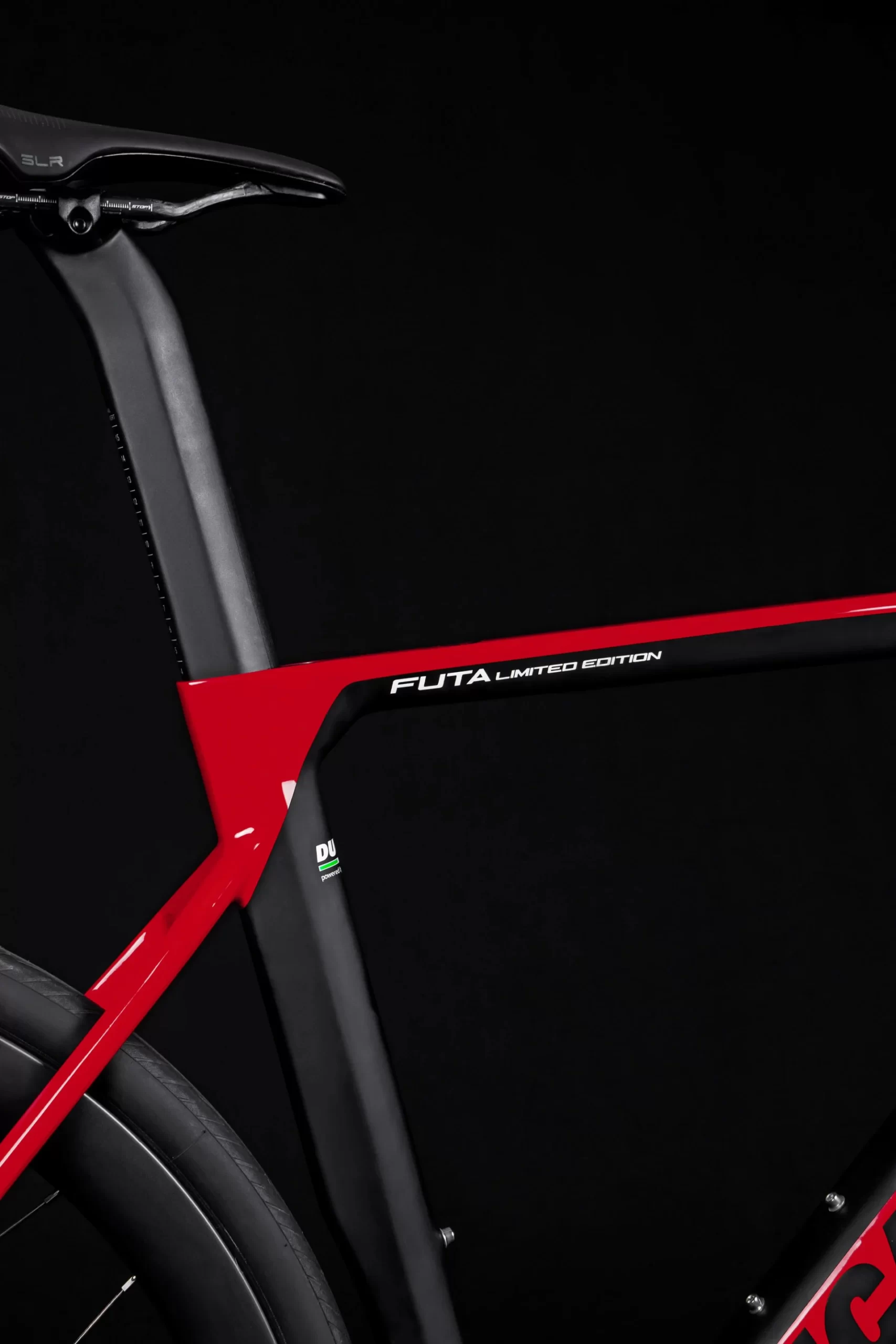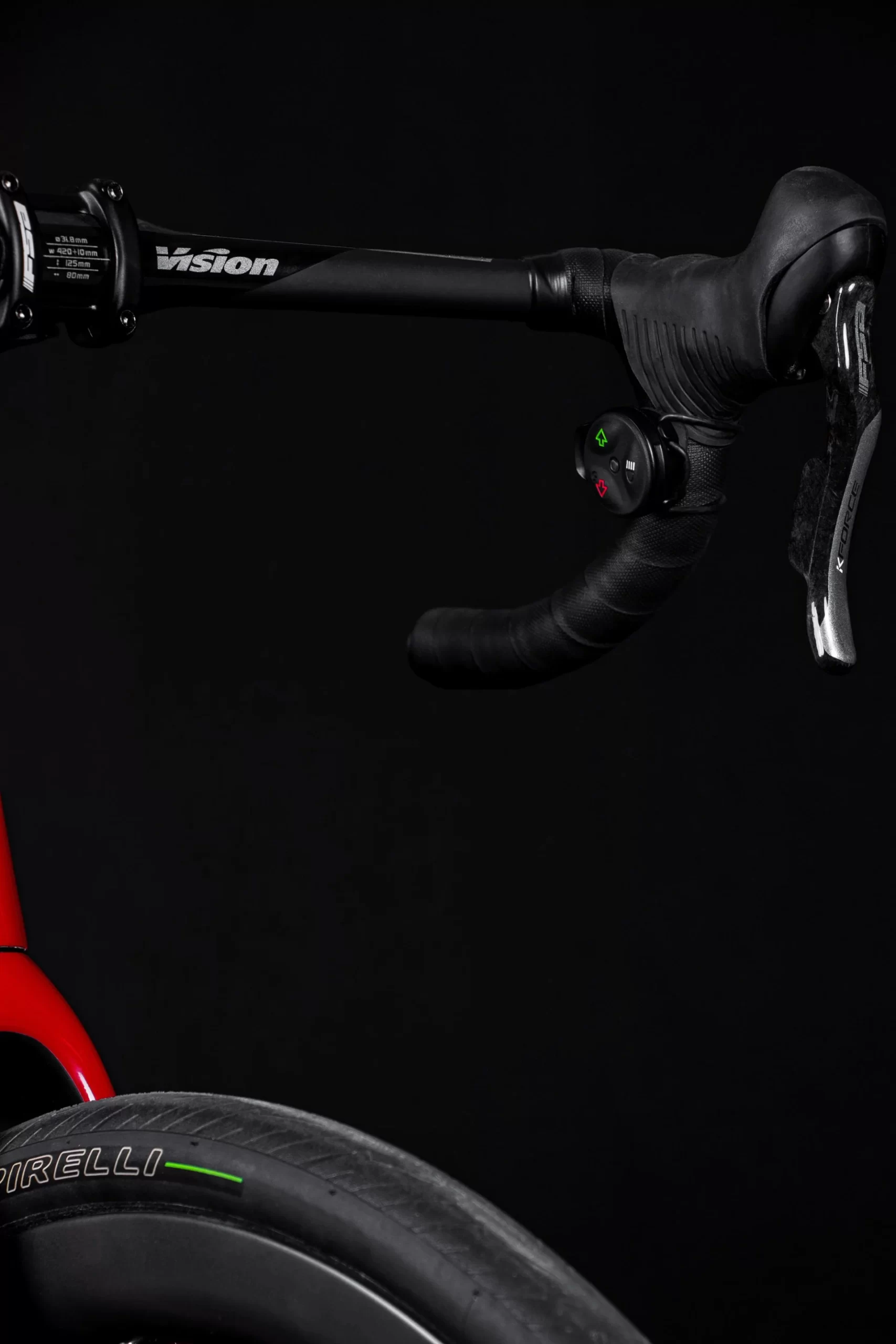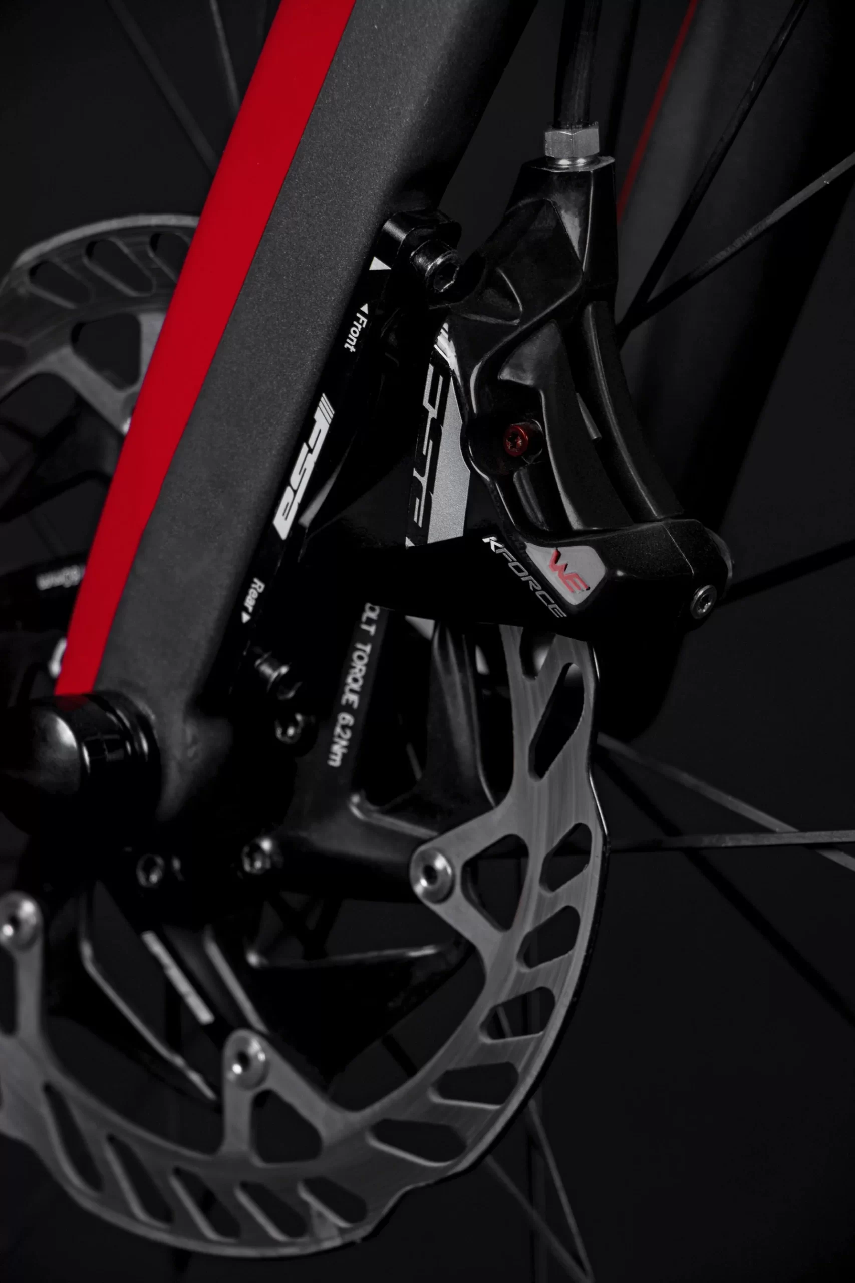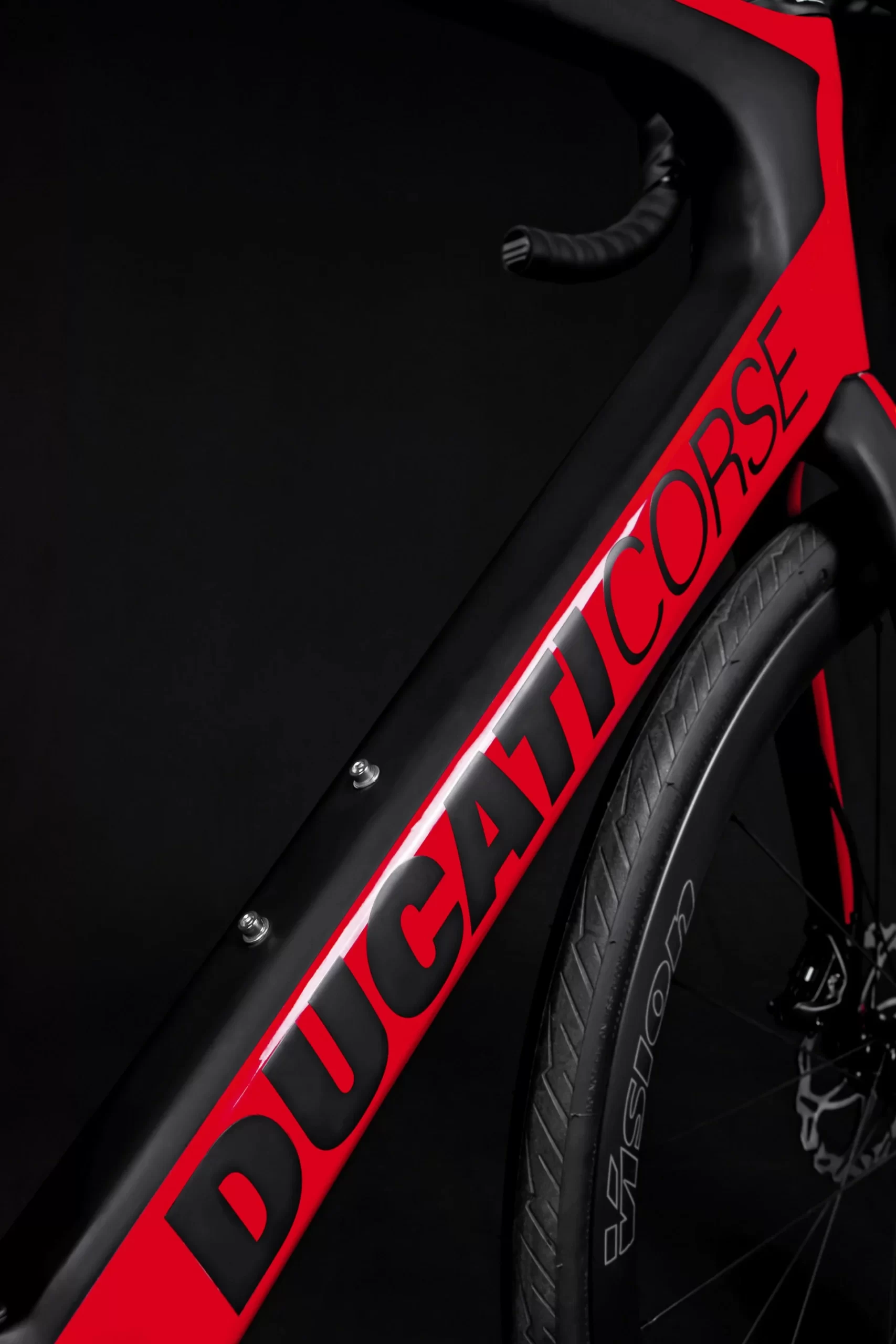 Il telaio monoscocca in fibra di carbonio UD presenta una geometria sport endurance, ma con scelte tecniche orientate all’aerodinamica e alla velocità.