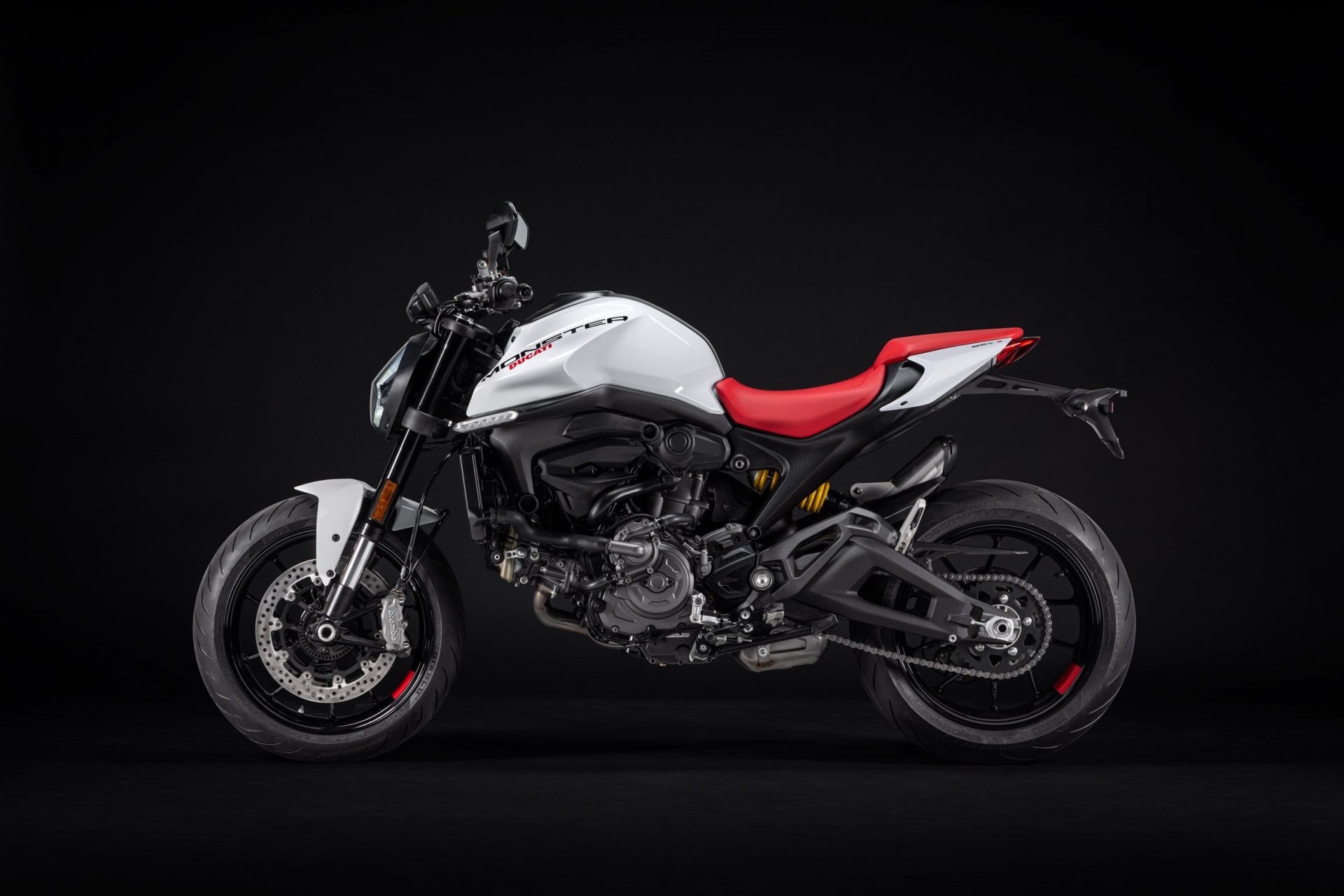 Il Monster monta il motore Testastretta 11° da 937 cc con distribuzione desmodromica e omologato Euro 5 ed eroga 111CV @9.250 giri/min. È un motore fluido e regolare ai bassi regimi, per gestire senza esitazioni il traffico urbano, ma è anche energico ai medi-alti regimi per regalare performance elettrizzanti in ogni momento. Il suo peso contenuto contribuisce alla leggerezza della moto e offrire migliore guidabilità.
