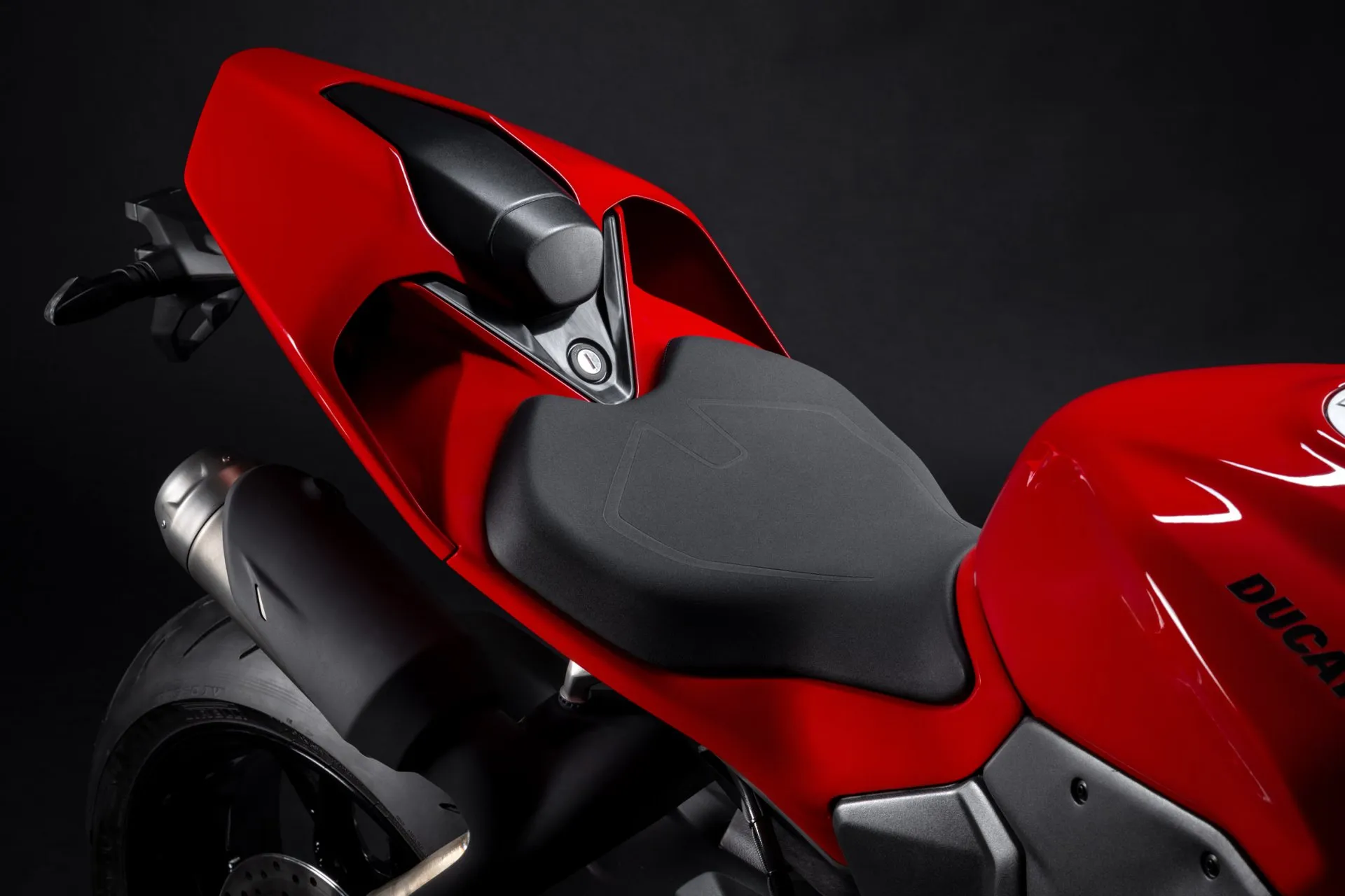 La nuova Ducati Panigale V2 segna un passaggio epocale nella storia delle bicilindriche sportive di Borgo Panigale. Per la prima volta non è derivata dalla moto di maggiore cilindrata che corre in Superbike e questo ha permesso di disegnarla da zero realizzando così la Panigale più leggera di sempre. Pesa infatti 17 kg in meno rispetto al modello precedente dal quale eredita lo spirito sportivo e le performance in pista aggiungendo facilità, comfort e piacere di guida.