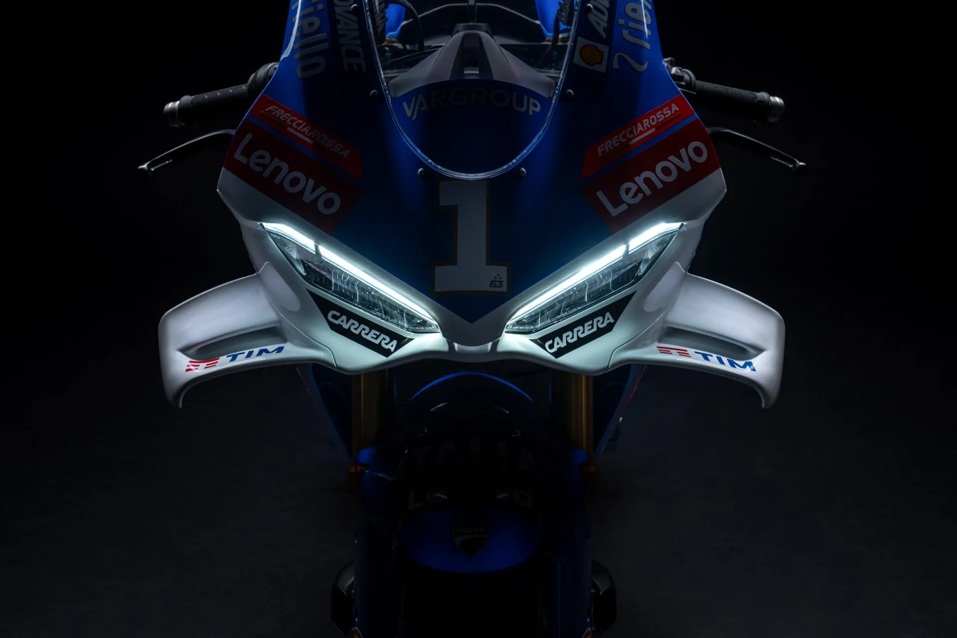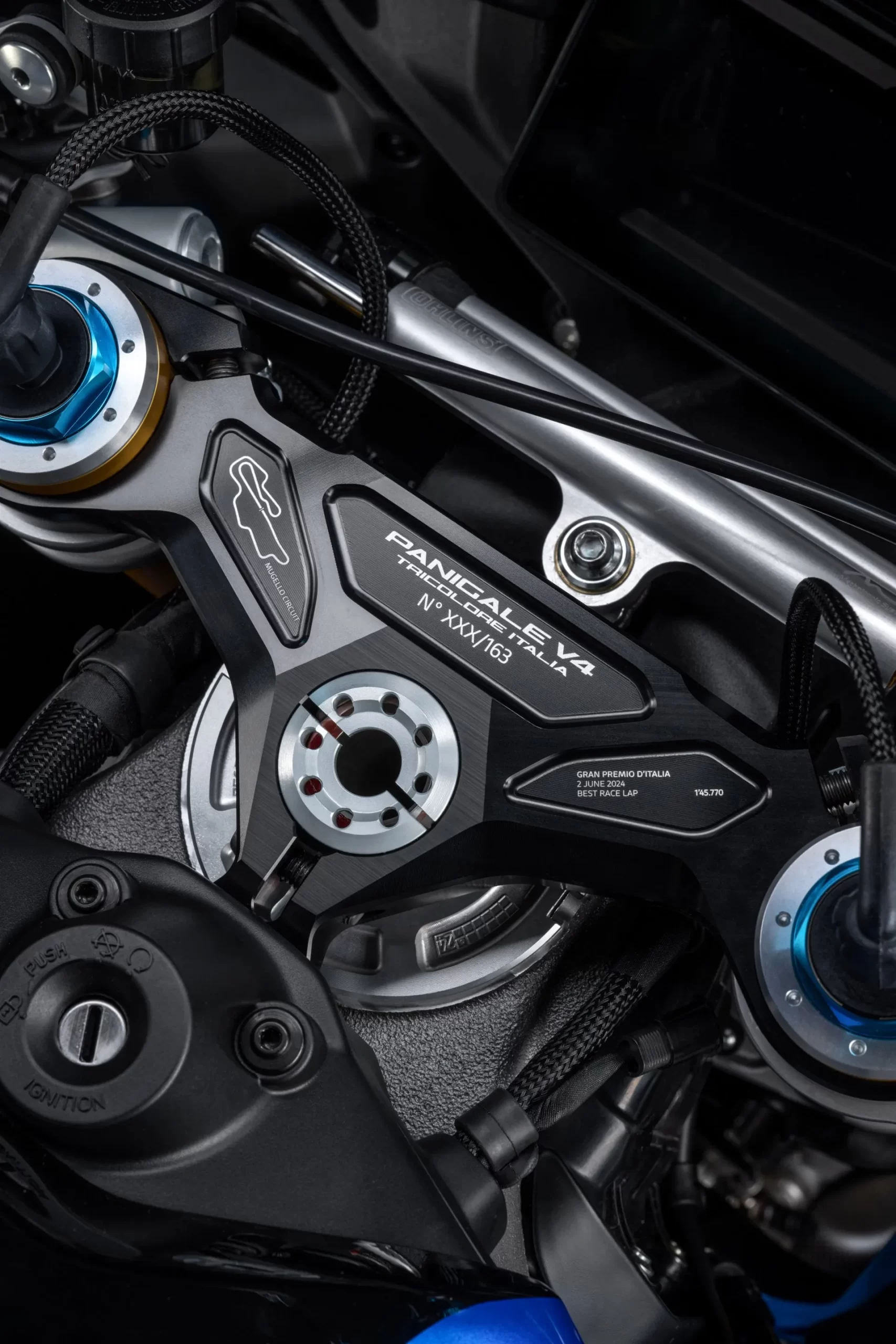 Un’edizione speciale da collezione che celebra la sportività italiana, numerata e limitata. 163 esemplari basati sulla nuova Panigale V4 S autografati da Francesco Bagnaia. Con la sua livrea, la moto celebra l’Azzurro delle Nazionali sportive italiane, lo stesso con cui Francesco Bagnaia e il Ducati Lenovo Team hanno trionfato al Mugello 2024. Panigale V4 Tricolore Italia è configurata in assetto racing con impianto frenante Brembo da competizione e altre caratteristiche esclusive.